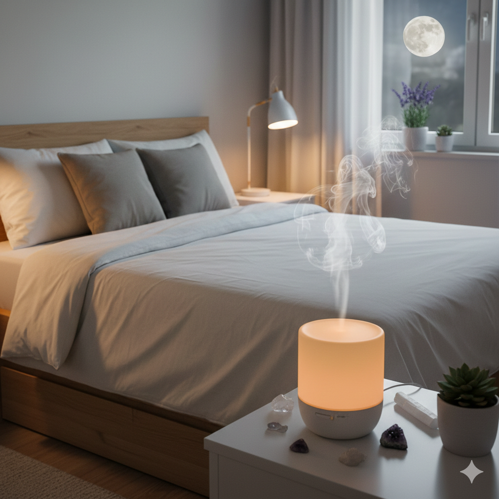 Ela reorganizou o quarto, removeu excessos e posicionou uma ametista na mesa de cabeceira como símbolo de desaceleração.