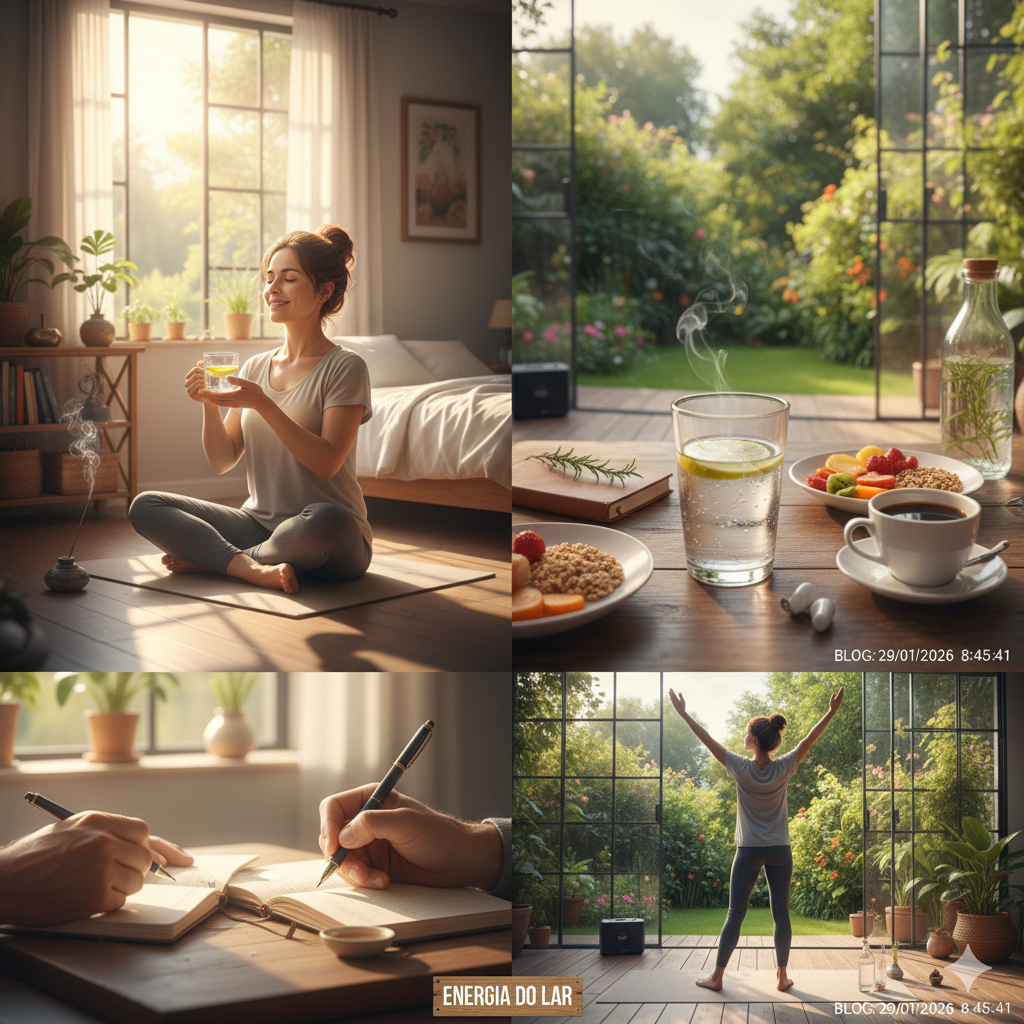 Quando a manhã começa com pressa, reclamação ou uso excessivo de telas, o ambiente tende a ficar carregado. Por outro lado, rituais matinais conscientes criam um campo energético mais leve e acolhedor.